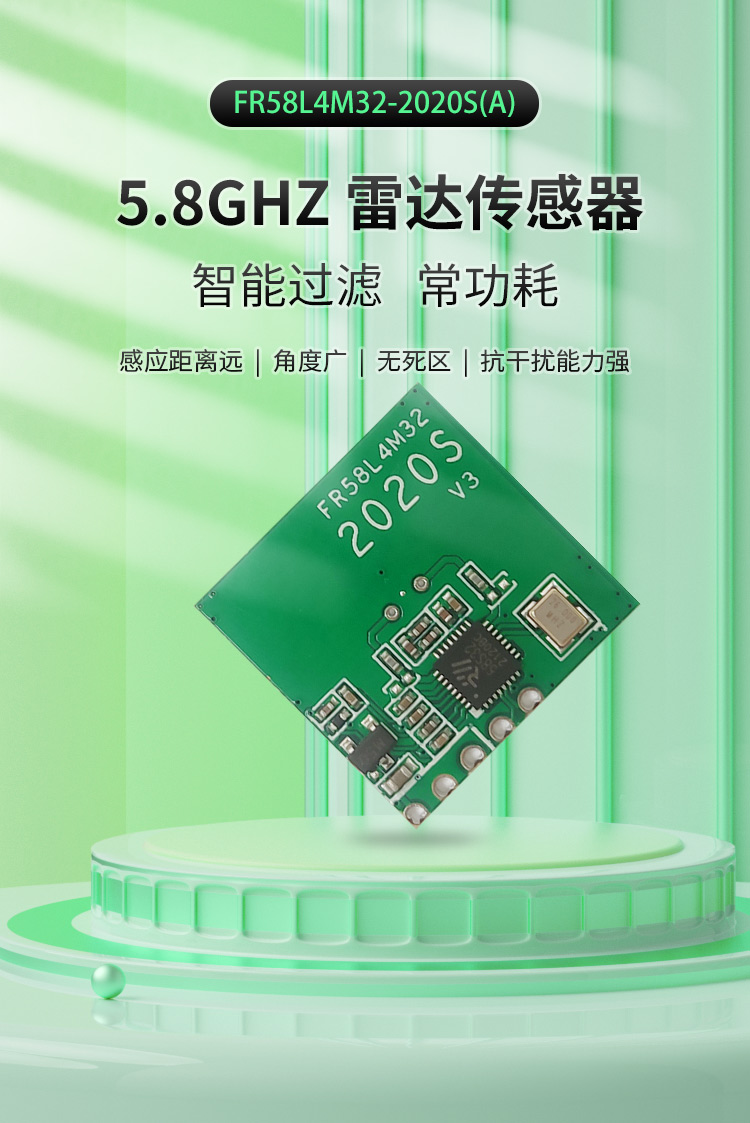 FR58L4M32-2020S(A)是飛睿智能推出的高性能 5.8G 雷達(dá)傳感器,雷達(dá)模塊利用多普勒原理,通過天線發(fā)射高頻電磁波并接收初期反射波,以此判斷覆蓋范圍內(nèi)物體的移動(dòng),給出相應(yīng)電信號(hào)。模塊尺寸 20*20MM該芯片集成了 5.8G 微波電路、中頻放大電路以及信號(hào)處理器,集成度高且生產(chǎn)一致性好,模塊內(nèi)置 32 位 MCU和收發(fā)天線,大大提高了傳感器的感應(yīng)性能。