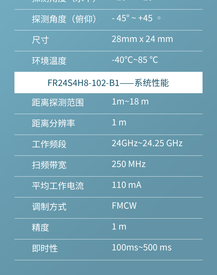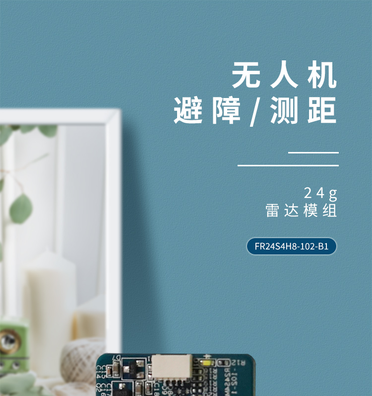 FR24S4H8-102-B1 簡稱 102 是飛睿智能設(shè)計的無人機避障傳感器,包含 24G 雷達傳感器硬件和智能算法固件。FR24S4H8-102-B1 硬件搭載高性能 24GHz 一發(fā)一收天線和外圍電路;采用毫米波雷達距離測量技術(shù)和高性能芯片先進的專有信號處理技術(shù)。